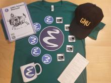 Celebrate the 35th anniversary - the "coral anniversary" - of the FSF in this bold t-shirt featuring a design by David Revoy.