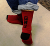 Proprietary code? PUT A SOCK IN IT! Freedom flowers in your footsteps when you sport these high-quality, crew-length socks. Rendered in black on a field of burgundy on each sock are the image of the GNU Project's emblematic smiling gnu at the front ankle, and the text, "GNU" to the rear - you will spread the message of freedom as you arrive AND depart. Manufactured in the USA of moisture-wicking material to keep your ungulates dry. Available in sizes Medium (fits US Men's shoe size 6-9, Women's 8-11) and Large (Men's 10-12, Women's 12-14).